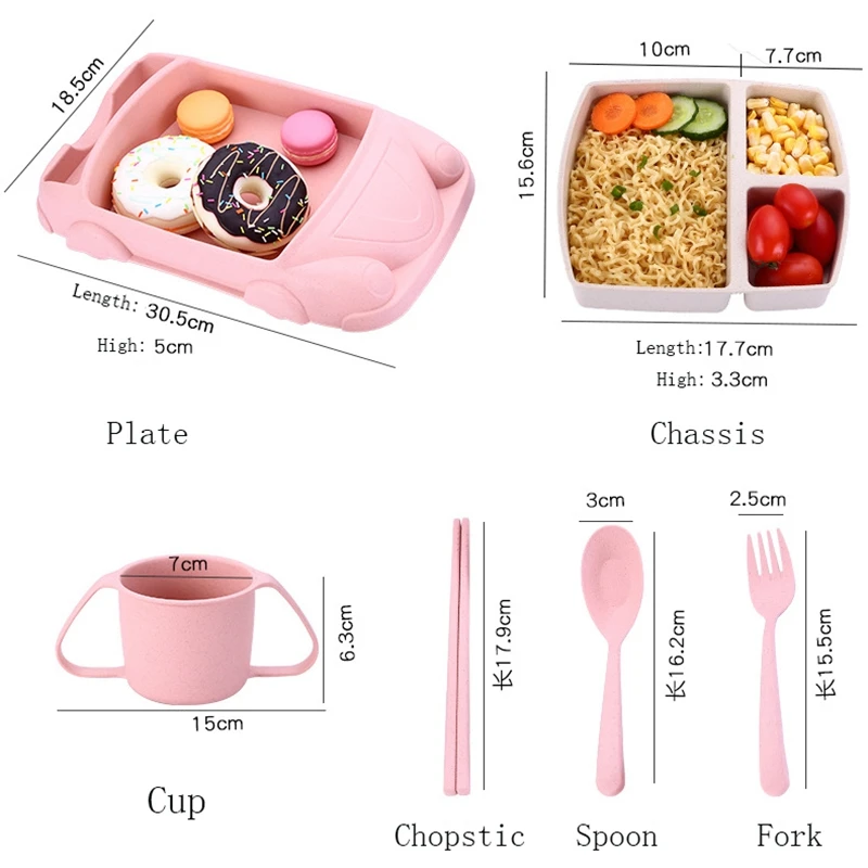 BEST QUALITY Baby Dinnerware Set Children Plate Tray Mat 6Pcs/Set Creative Bamboo Fiber Kid Feeding Spoon Fork B